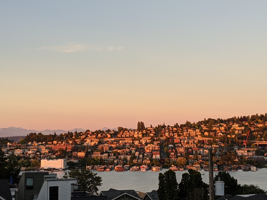 The weather was perfect and the views fantastic. When not in the tent, I could look out over Lake Union to the Capitol Hill neighborhood to the snow covered Cascade mountains in the distance. To the south was the Seattle skyline and Mount Rainier boldly rising up behind it. Ironically, I could also look from my rooftop tent to the roadside tents below. I’d considered saving money by adding my own residence to the line below but, in the end, I opted for the comfort of my island in the sky.