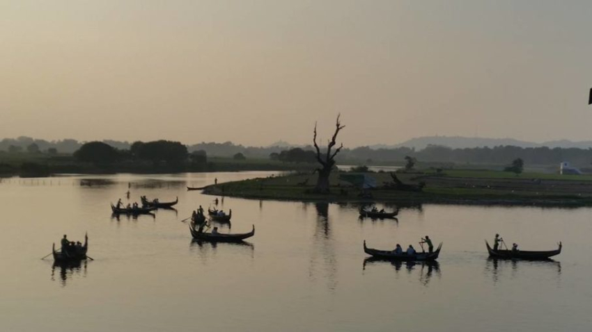 Later that afternoon, I rode about 45 minutes to a lake south of the city. I was getting bored with pagodas and decided to check out what I’d read was the longest teakwood bridge in the world. As I wove my way through potholed city streets, I finally felt like I was getting off the beaten path. I stopped at the top edge of the lake and walked my bike to the shore where I watched fisherman walking wide circles to ensnare wish within their hand woven nets. It is a very effective practice, I noticed, because on my way to the shore I passed a fisherman with a net full of squirming fish.