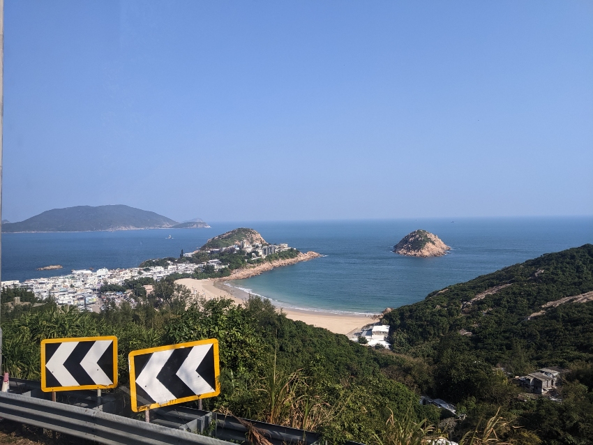 Since I was neither hungry nor in need of anything, I headed back up to the bus terminal for my next leg. The journey to Shek O required an unusual transfer. You get off at a fork in the road and have to walk up one of the forks around a blind corner with no shoulder. It was hard to believe they separated the bus stops in a way that forced you to risk your life in order to make the transfer.
